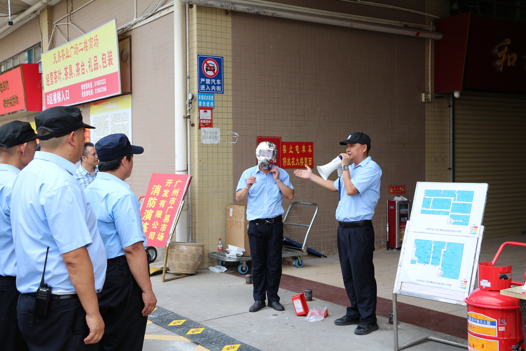 演練由廣州市廣易市場開發有限公司董事長何英任總指揮,天易茶業廣場總經理黃光華任現場指揮。場景設定為:消防控制室發現三樓倉庫“火警”并立即報告處置。警報響起,市場應急機制高效激活,市場員工和商戶順利疏散,演練有序完成。天易茶業廣場全體員工、廣易實業部分員工及商戶代表參與演練,部分員工及商戶現場觀摩。演練后同樣進行了知識宣講與滅火實操。廣州市廣易實業有限公司常務副總王志君作點評,董事長何英宣布演練結束。