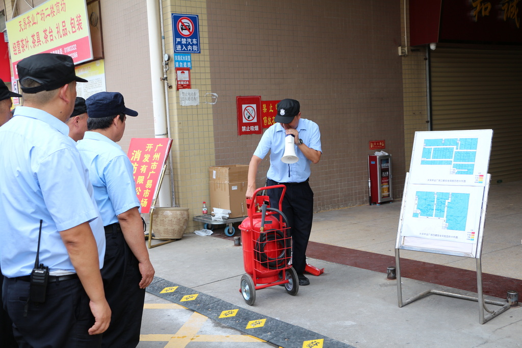 演練由廣州市廣易興拓商貿有限公司總經理姚雪毅任演練總指揮,工程部副經理唐志強任現場總指揮。演練模擬四樓倉庫“初起火”,倉庫管理人員、安保及員工反應迅速,疏散過程緊張有序,人員均在規定時間安全撤離,初期火情得到有效控制。演練充分檢驗了消防設施的完好有效,強化了工作人員應急處置流程及商戶疏散逃生意識。演練結束后,組織了消防器材教學使用。