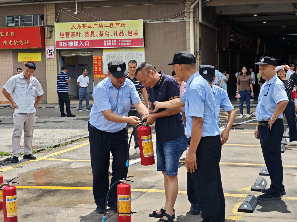 公司定期開展消防隱患排查整治,確保消防設施完好有效,致力將廣易茶城打造成為員工安心、商戶放心、顧客舒心的安全市場,為公司穩健發展構筑堅實安全防線!